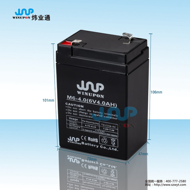 | 規格型號 | 6V4AH | 外形尺寸(±2mm) | 約重0.66KG | |||