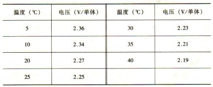 (3)注意檢查各單體電池問(wèn)溫度變化,個(gè)別電池與整體電池溫差超過(guò)3℃,有可能導(dǎo)致該電池所需浮充電流的增大,所以設(shè)備環(huán)境溫度非常重要,最佳運(yùn)行溫度為25℃,一般保證工作環(huán)境溫度在20~25℃之間。達(dá)不到者應(yīng)采用空調(diào)補(bǔ)助措施,或進(jìn)行溫度補(bǔ)償。因?yàn)榄h(huán)境溫度低于25℃時(shí),電池容量減少,壽命延長(zhǎng),環(huán)境溫度高于25℃時(shí),電池容量增加而壽命縮短。電池避免安放在太陽(yáng)直曬或溫差較大的環(huán)境中。以25 cC為準(zhǔn),環(huán)境溫度每升高l℃時(shí),浮充電壓降低0.003V/單體;環(huán)境溫度每降低1 cC時(shí),浮充電壓升高0.003v/單體;如果環(huán)境溫度變化超過(guò)l0℃,而沒(méi)有修正浮充電壓,將可能導(dǎo)致電池?fù)p壞。溫度補(bǔ)償參數(shù)見(jiàn)表3-3。