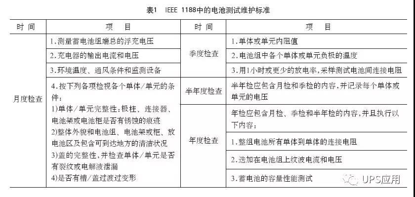第二個問題使用維護的問題,表1為國際電池測試維護標準。